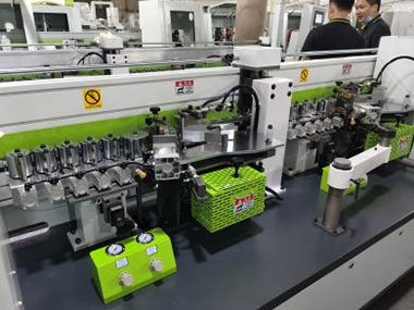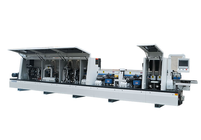 主要功能:預銑-涂膠貼邊1-六輪壓貼--涂膠貼邊2-六輪壓貼--前后齊頭-精修1-精修2-跟蹤修邊-氣動刮邊-平刮-氣動拋光1-氣動拋光2-屏幕一鍵控制前后清洗,集成溫控模塊。