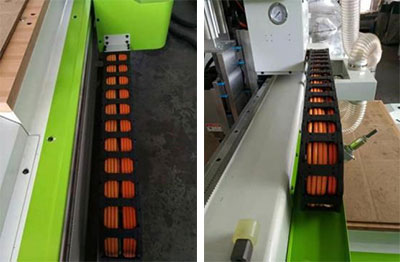 采用新型拖鏈,內(nèi)分格,將信號線、電源線按照規(guī)格區(qū)分開,更好的防御信號干擾,同時也杜絕了線纜工作過程中擰在一起。電纜線采用高揉性屏蔽線,使用壽命更長 |