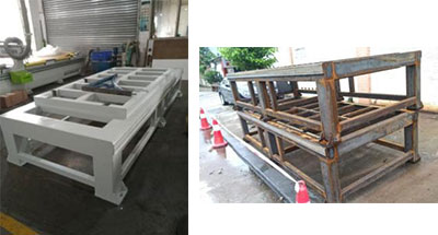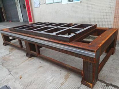 采用方鋼焊接,回火處理,消除焊接應(yīng)力,保證使用多年后不會變形。床身加強筋比較密集,增加了床身強度,保證底板不變形。 |