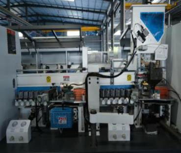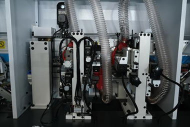 6輪壓貼貼合比4輪更精密,膠線輕微不跑帶,貼合牢靠,厚薄木皮均可輕松走帶,氣缸控制開關(guān)膠門,膠量穩(wěn)定,厚薄均勻。 |