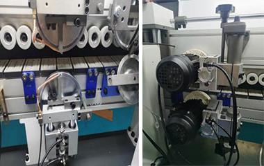 氣動控制的刮刀無需單獨調(diào)校,屏幕一鍵到位。超硬合金R刀刮平封邊條細(xì)紋,使之圓滑。 |