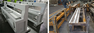 采用方鋼焊接,回火處理,消除焊接應(yīng)力,保證使用多年后不會(huì)變形。床身焊點(diǎn)比較密集,增加了床身強(qiáng)度,保證機(jī)架不變形。 |