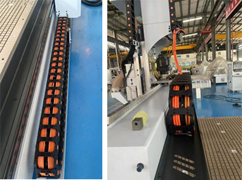 采用新型拖鏈,內(nèi)分格,將信號(hào)線、電源線按照規(guī)格區(qū)分開,更好的防御信號(hào)干擾,同時(shí)也杜絕了線纜工作過(guò)程中擰在一起。電纜線采用高揉性屏蔽線,使用壽命更長(zhǎng) |